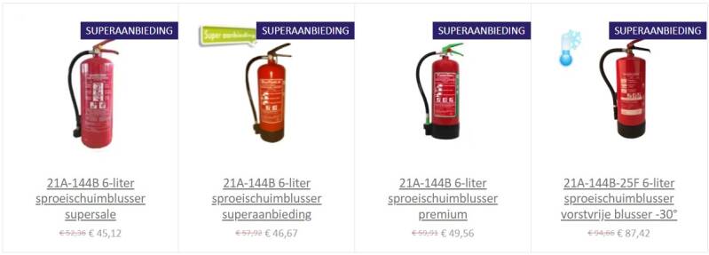 21A-144B brandblusser..? Om verschillen tussen brandblussers aan te duiden zijn bluscapaciteit testen ontwikkeld. 21A-144B op het brandblusser etiket geeft aan welke maximale brandgrootte met een 21A-144B brandblusser ( schuim ) u kunt blussen. De omstandigheden waarin de 21A-144B brandblussers worden getest wordt vooraf bepaald. Het testresultaat hangt af van het soort brandblusmiddel, het type brandblusser en van de ervaring van de persoon die de test uitvoert. Een 21A-144B brandblusser is geschikt voor blussen in brandklasse-A en brandklasse-B. Op elke brandblusser wordt altijd de blusrating met getallen in combinatie met de letter van de bijbehorende brandklasse vermeldt. Een 21A-144B brandblusser is de brandblusser voor kantoorruimten en tevens andere verwarmde bedrijfsruimten in bedrijfsgebouwen, winkels, instellingen en verenigingsgebouwen. Ook is de 21A-144B brandblusser verkrijgbaar met vorstvrij schuim blusmiddel. De 21A-144B-25F brandblusser is zelfs geschikt voor blussen in brandklasse-F* (vetbrand tot maximaal 25-liter frituurvet/frituurolie*). In de webshop een groot assortiment schuimblussers. Brandblussers voordelig laten onderhouden? Vraag gerust een prijsopgave.