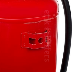 Brandblusser standaard voor twee brandblussers. Dat kan zijn twee 6-kg-poederblussers of twee 6-liter-schuimblussers of een combinatie van beiden. Brandblusser standaard nodig? Bij BlusPunt Brandblussers online brandblusser standaard in rode kleur kopen. Robuust design, uiterst fraaie vormgeving en van degelijke kwaliteit. Ideaal voor het direct realiseren van een vrije brandblusser opstelling in bijv. museum, kantoorruimte, entree de bedrijfsreceptie, evenement of in een andere ruimte of omgeving. De hoogte van de haak waaraan de brandblusser opgehangen wordt is 59 cm. Dit is een prima grijp hoogte. De haak waar je de brandblusser overheen hangt is geschikt voor de meest gebruikte poeder en schuim brandblussers (zie de foto met daarop de ophang opening aan achterzijde brandblusser). In de webshop meer brandblusser standaards en brandblusser accessoires.