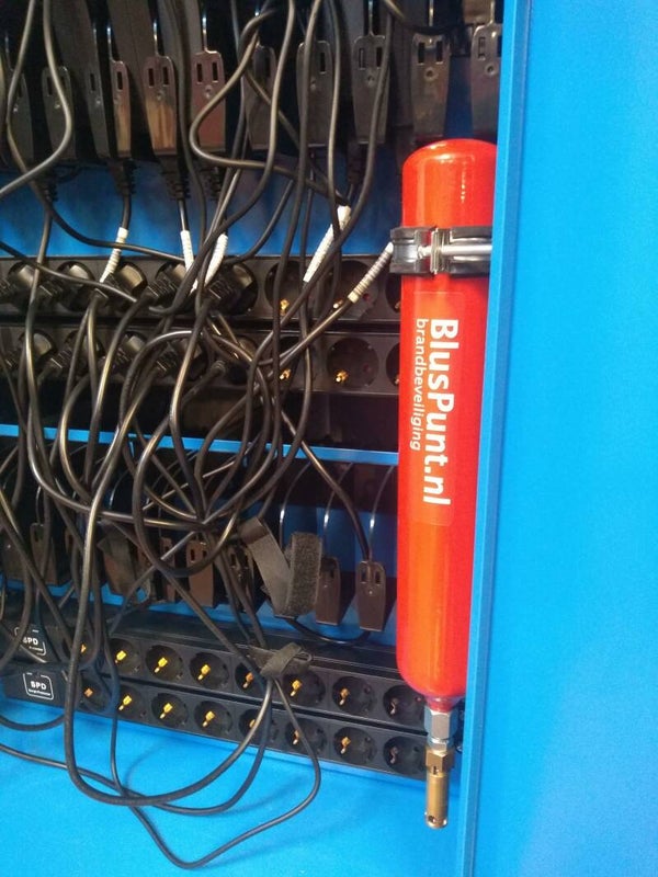 Automatische brandblussers die brand in compartimenten volautomatisch en zonder elektrocutie gevaar automatisch blussen. Bent u voor juiste brandpreventie in serverkasten, besturingskasten, meterkast of andere ruimte of kast op zoek naar de beste automatische brandblusser die geen blusschade aan kostbare installaties teweegbrengt? Dan zijn deze 24/7 werkende automatische sprinkler blusgas brandblussers de beste oplossing! Koop in de webshop de automatische sprinklerblusser naar benodigde m3 inhoud. Is de m3 inhoud van het tegen brand te beschermen compartiment groter dan de brandblusser biedt? Monteer dan meerdere sprinklerblussers in het compartiment, ruimte of kast.