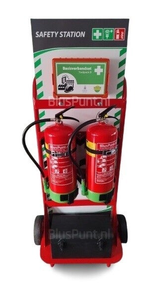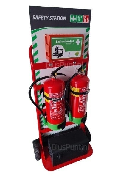 Gebruiksvriendelijke verrijdbare BHV-wagen om brandblussers en naar wens EHBO-materialen in op te bergen. Handig wanneer op locatie binnen het bedrijf brandrisicovolle werkzaamheden uitgevoerd worden. Neem de BHV wagen mee naar de locatie bij las- en slijpwerkzaamheden. Bescherm dat wat van belang is met deze oerdegelijke BHV wagen. Veiligheid is immers een prioriteit. Met deze mobiele unit heb je de ultieme bedrijfsveiligheid oplossing in huis. Bedoeld voor snelle inzet in zakelijke, recreatie, zorginstelling en evenementen omgeving. Doordat de BHV wagen met verbandkoffer is uitegerust komt deze mobiele veiligheidsunit volledig tot zijn recht. Veiligheid is iets waar je geen compromissen in sluit. De mobiele BHV wagen biedt de ultieme combinatie van mobiliteit veelzijdigheid en betrouwbaarheid zodat je bent voorbereid op calamiteiten. Met deze mobiele veiligheidsunit heb je een standalone veiligheidsvoorziening.