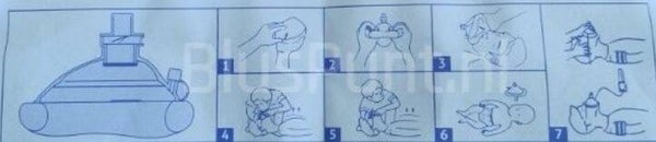 - Plaats het masker op het gezicht volgens de afbeelding op de instructie