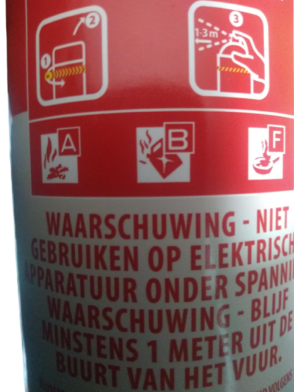 - blustijd: 25 seconden / blusmiddel: schuim 3 jaar houdbaar