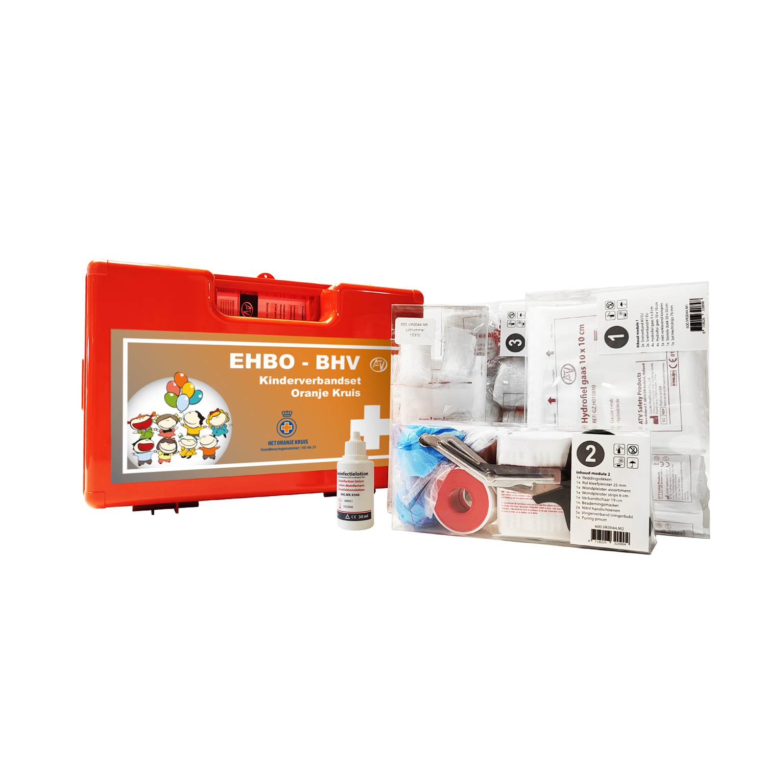 Verbandkoffer kinderen inclusief letselgerichte modules. De EHBO BHV verbandkoffer voor kinderopvang en scholen gevuld met EHBO middelen voor kinderrijke omgevingen. De verbandkoffer voor kinderen bestaat uit letselgerichte modules. Iedere module bevat EHBO artikelen voor een bepaald type verwonding. Inhoud EHBO verbandkoffer voor kinderen voldoet ruim aan de richtlijnen van het Oranje Kruis. Aanbieding BHV EHBO verbandkoffer voor wondverzorging bij kinderen nu inclusief wandhouder. Ook in de webshop te koop pleisters, oogspoelmiddel, pleisterdispensers, brandblussers en verbandkoffers met universele en branchegerichte Oranje Kruis inhoud. A-merk verbandkoffer kinderen.