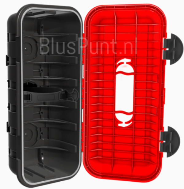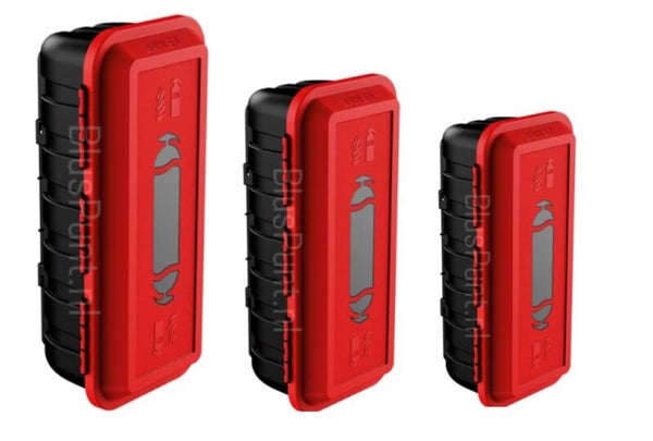 Brandblusserkast voor brandblusser 12-kilo-poeder of 5-kilo-CO2 tegen weersinvloeden en schade te beschermen. Een robuuste kunststof brandblusserkast met verstevigingsribben voor een optimale stevigheid. Gemaakt van slagvast kunststof voorzien van transparant doorkijkvenster. Ontworpen voor maximale bescherming van 12-kg poederblusser of 5-kg CO2 brandblusser. Brandblusserkasten worden ingezet ter bescherming van brandblussers in jachthavens, bij benzinestations aan tankeilanden, aan vrachtwagens en op (evenementen)terreinen. Neem voor informatie over brandblusserkasten gerust contact op.