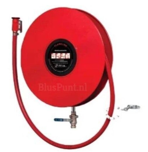 Met brandslanghaspels op elke verdieping in bedrijfsgebouwen elk punt bestrijken. U mag 5 meter worplengte van de straal bij de brandslanglengte optellen. Een 25 meter brandslang telt in de projectie voor 30 meter bereik. Prima brandslanghaspel voor bedrijven en gebouwen van verenigingen en instellingen. Een brandslanghaspel dient volgens eisen van toezichthoudende instanties en onderhoudsnorm EN-671-3 jaarlijks onderhouden worden. In ieder 5e jaar dient de brandslang op de maximale werkdruk (15 bar) afgeperst te worden. Dit is om te controleren of de brandslang na verloop van tijd niet poreus is geworden. De brandslanghaspel wordt geleverd in de kleur RAL 3000. Brandslanghaspel van degelijke kwaliteit dat zich in probleemloos gebruik, lange levensduur en een gegarandeerde bluskracht vertaald. Na productie verlaat de brandslanghaspel pas na de grondige kwaliteitscontrole goed verpakt de fabriek. In de webshop eenvoudig brandslanghaspels en draagbare brandblussers met schuim, poeder, spray of koolzuurgas blusmiddel bestellen en veilig per IDEAL online betalen. in de webshop pictogram bord kopen met voordelige prijs! Bordje boven brandslanghaspel verplicht? Op twee meter hoogte vanaf de vloer dient er volgens de voorschriften vanuit de projectienorm een blusmiddel locatie-aanduiding-bord aanwezig te zijn. Dit dient om snelle brandbestrijding te bespoedigen.